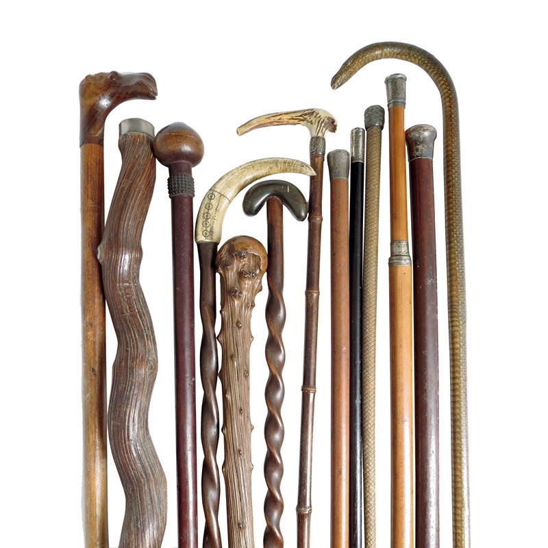 A large collection of canes and staffs