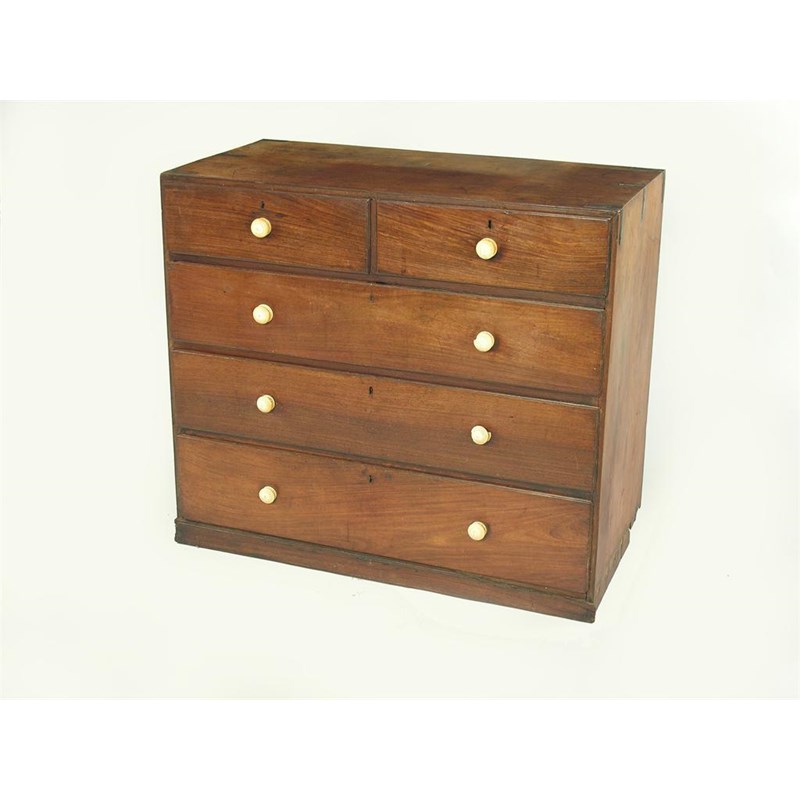 A late 19th century Anglo-Chinese padouk campaign chest, the brass bound top side edges to moulded edge drawers fitted turned ivory handles, 36.75in (93.4cm) h, 41.5in (105.4cm) w, 20.5in.