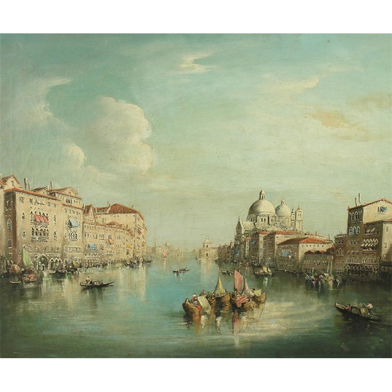 R.R. (20th century). The Grand Canal and Santa Maria della Salute, Venice, oil on canvas, signed with initials, 20.25 x 24in (51.4 x 61cm).