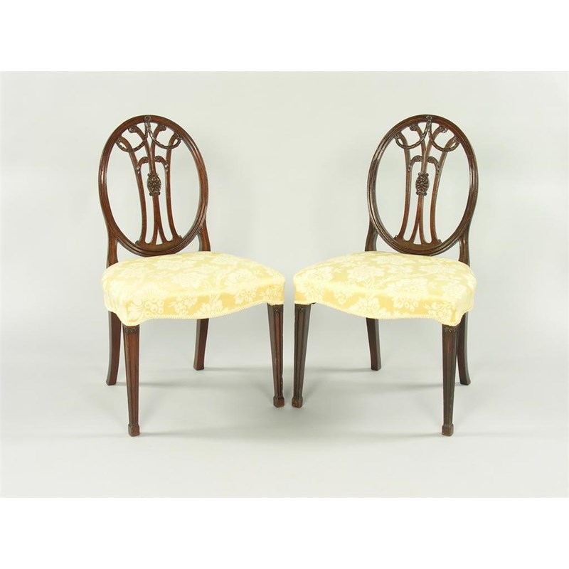 A set of four George III carved mahogany side chairs