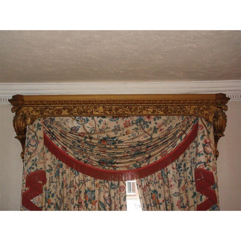 A pair of giltwood and gesso pelmets, decorated fruiting foliage with scroll acanthus volutes, approx. 108in (274cm) w, 38in (96.5cm) w and another smaller, approx. 102in (260cm) w. (3)