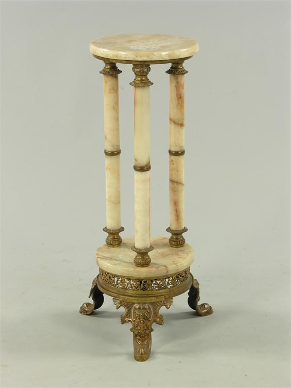A French onyx and gilt metal gueridon, 29.75in (75.6cm) h, 10.5in (26.6cm) dia.