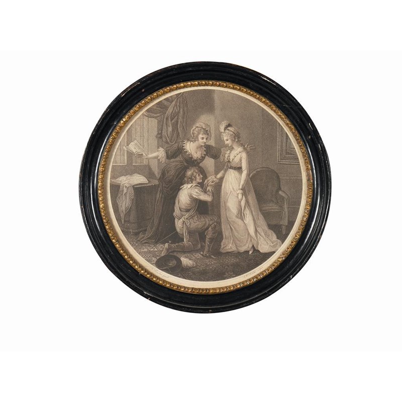 After W. Hamilton. 'The Proposal', a stipple engraving, 12.5in (32cm) dia.