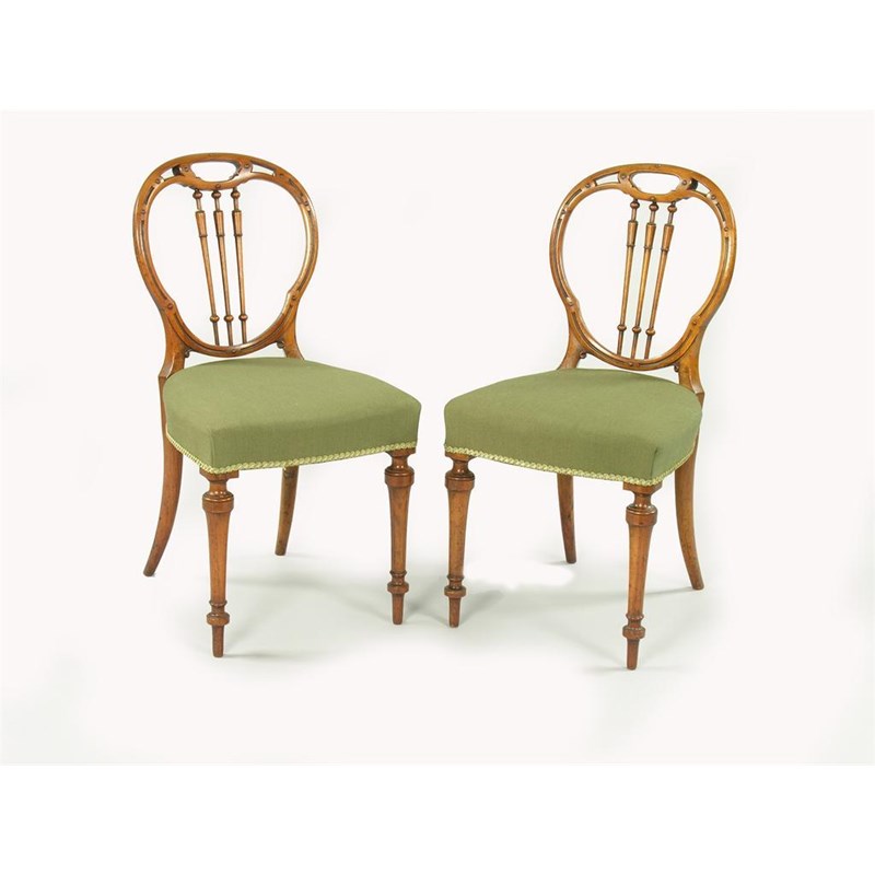 A set of four Victorian walnut side chairs, with later stuffed over seats. (4)