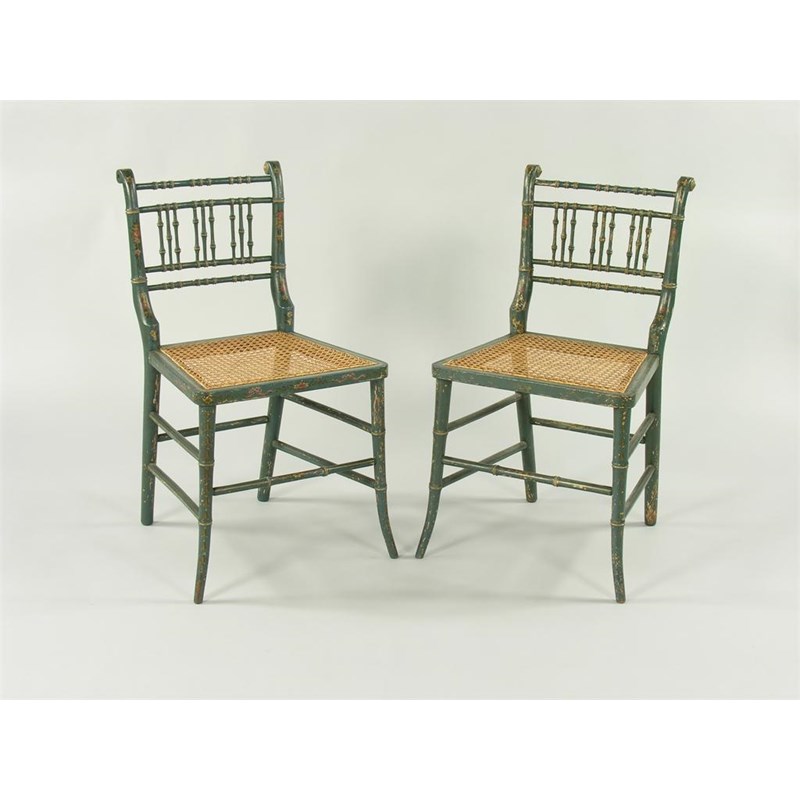 A pair of early 19th century painted and turned beechwood side chairs, with cane seats. (2)