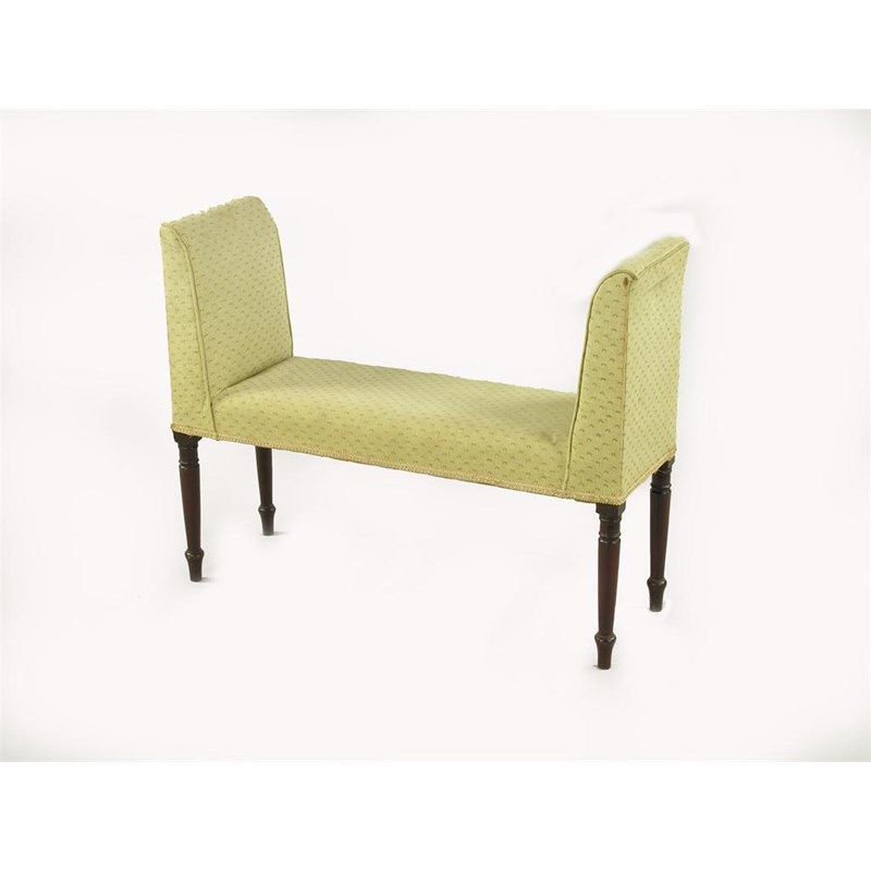 A 19th century window seat, later covered on turned mahogany legs, 30.5in (77.4cm) h, 39.5in (100cm) w, 12.5in (32cm) d.