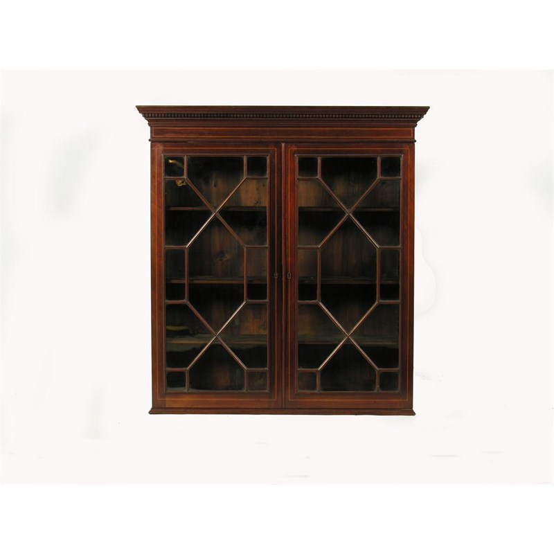 An Edwardian mahogany bookcase, inlaid stringing, with a detachable cornice and adjustable shelves, 45.25in (115cm) h, 42.25in (117.2cm) w, 11.5in (32cm) d.