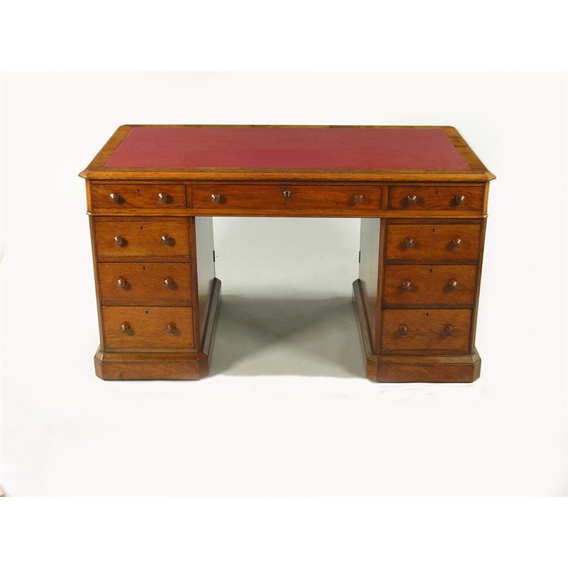 A Victorian pollarded oak pedestal desk