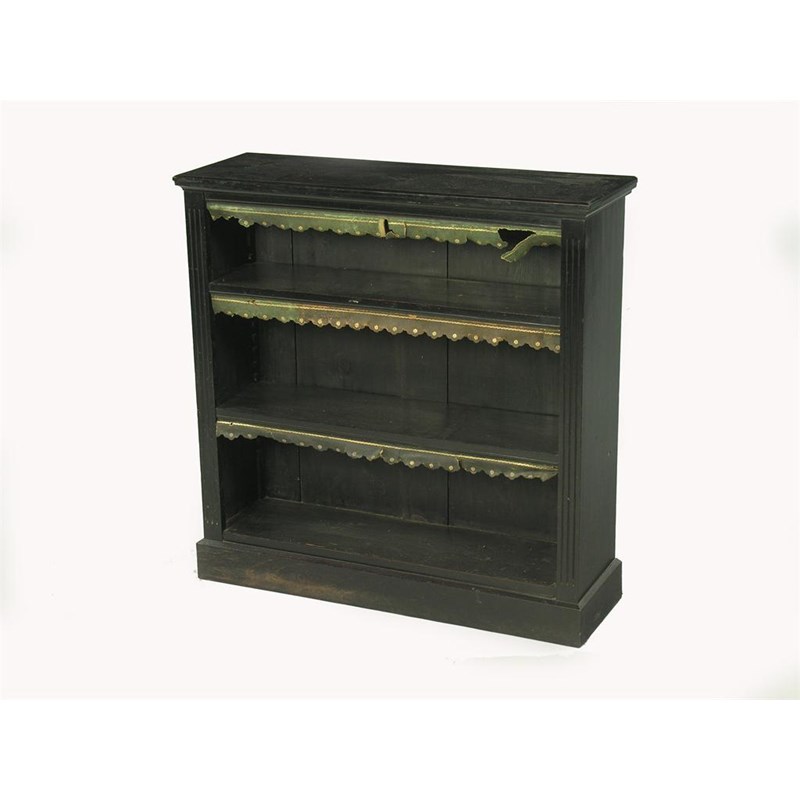 A late Victorian ebonised low bookcase, with adjustable shelves, 36.25in (92cm) h, 36in (91.4cm) w, 12in (30.5cm) d.