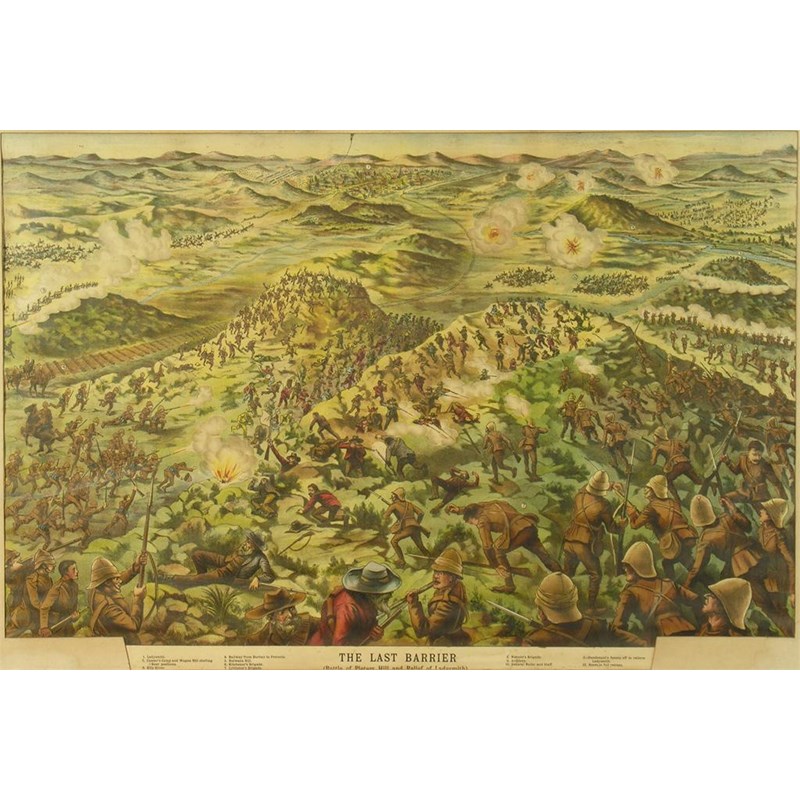 Boer War Interest. A chromolithograph, 'The Last Barrier (Battle of Pieters Hill and Relief of Ladysmith', 18.75 x 27.5in (47.5 x 70cm).