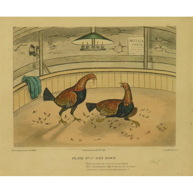 After C.R. Stock. 'Cock Fighting', a set of six coloured lithographs, 8.5 x 10.5in (21.5 x 26.6cm). (6)