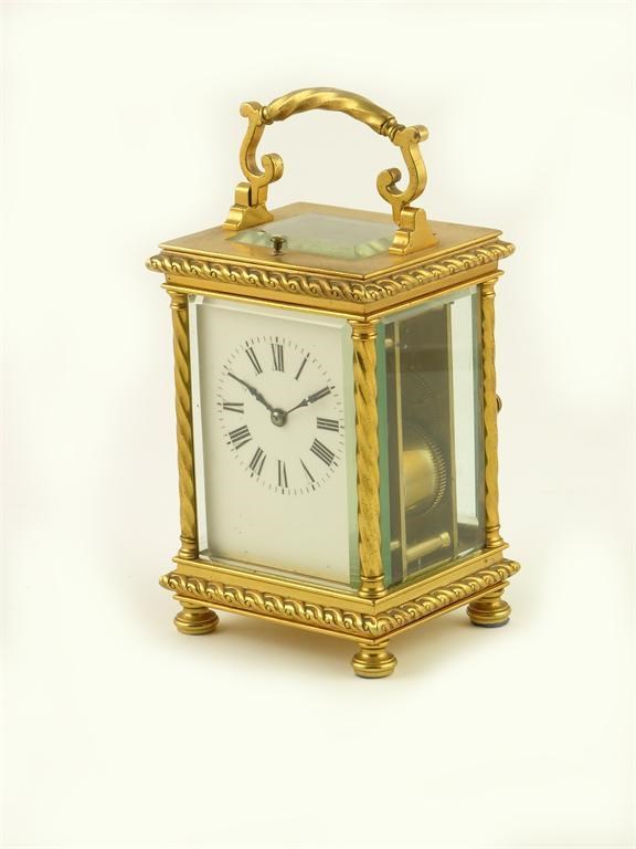 A French brass cased repeating carriage clock