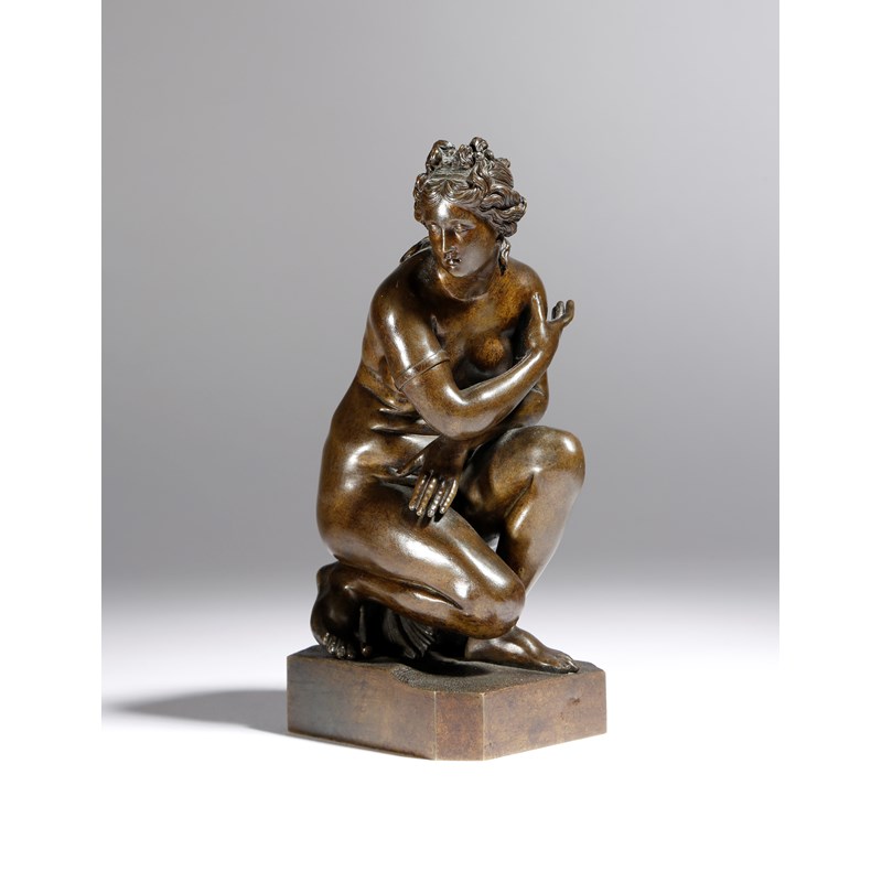 After the antique. An early 19th century Italian bronze Grand Tour model of the 'Crouching Venus'
