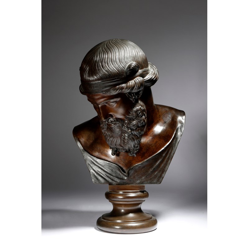 After the antique. A late 19th century Italian Neapolitan bronze Grand Tour bust of Plato by Sommer
