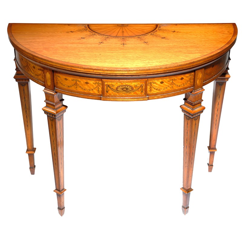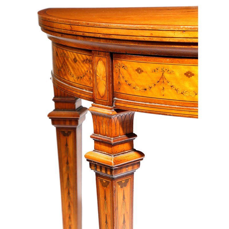 A late Victorian satinwood and marquetry demi-lune card table by Filmer