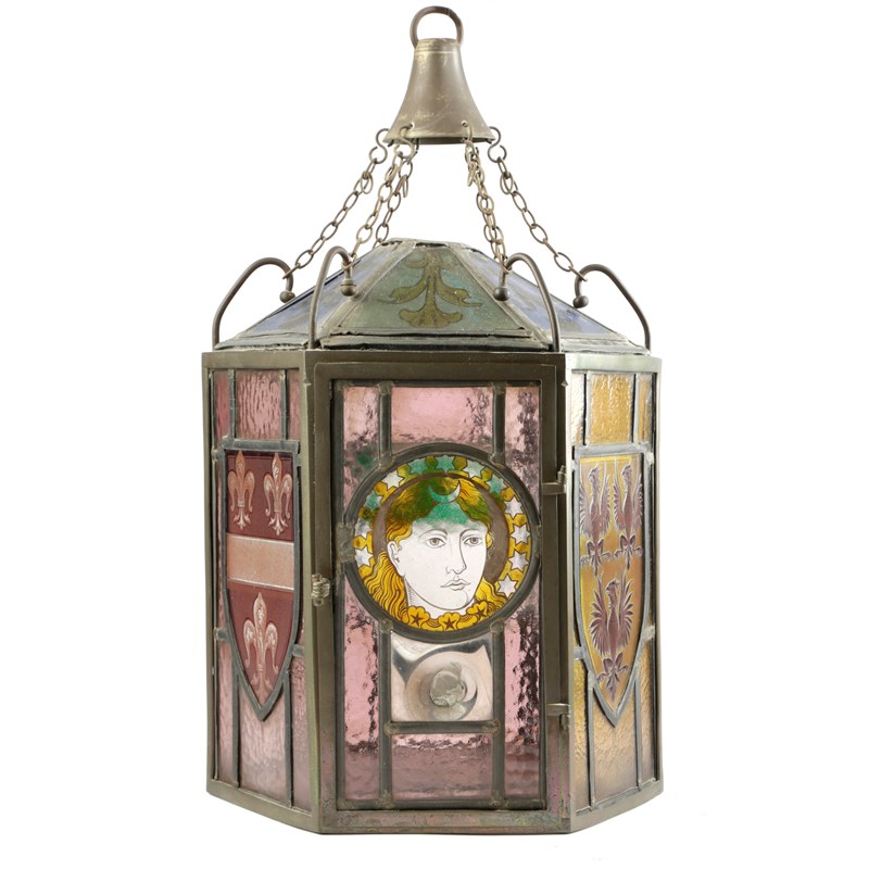 A HEXAGONAL STAINED GLASS HALL LANTERN