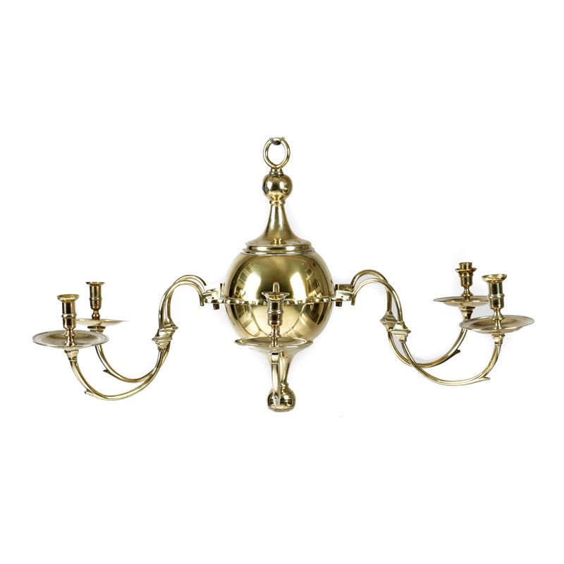 A GEORGE II BRASS SIX-LIGHT CHANDELIER
