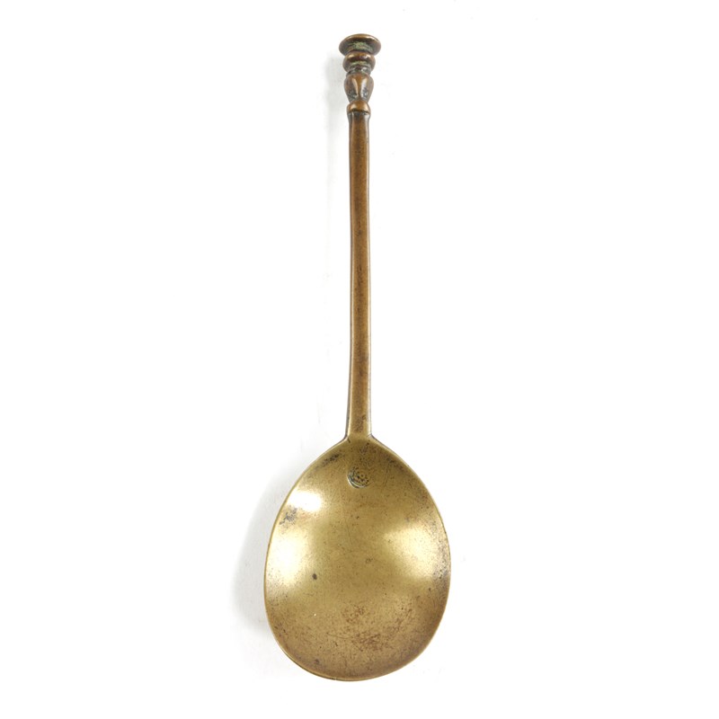 AN ELIZABETH I OR JAMES I LATTEN SEAL TOP SPOON