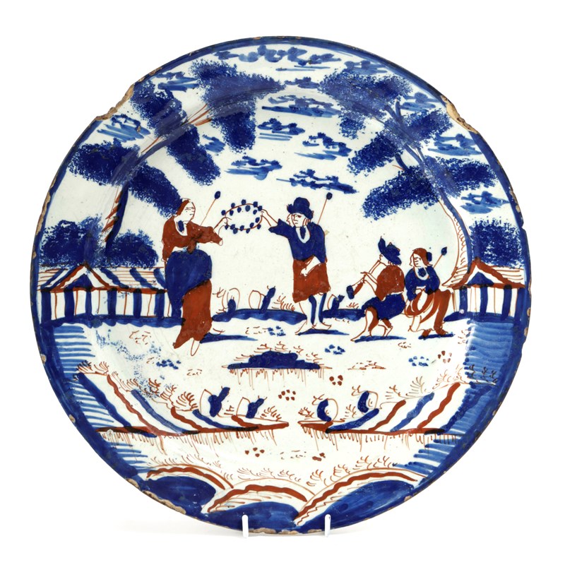 AN ENGLISH DELFT POTTERY POLYCHROME CHARGER