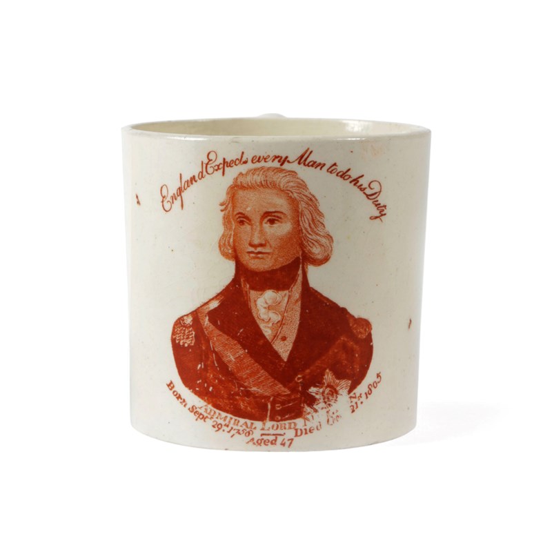 printed in red with a head and shoulders portrait inscribed 'England Expects every Man to do his Duty' and titled 'Admiral Lord Nelson' above his dates