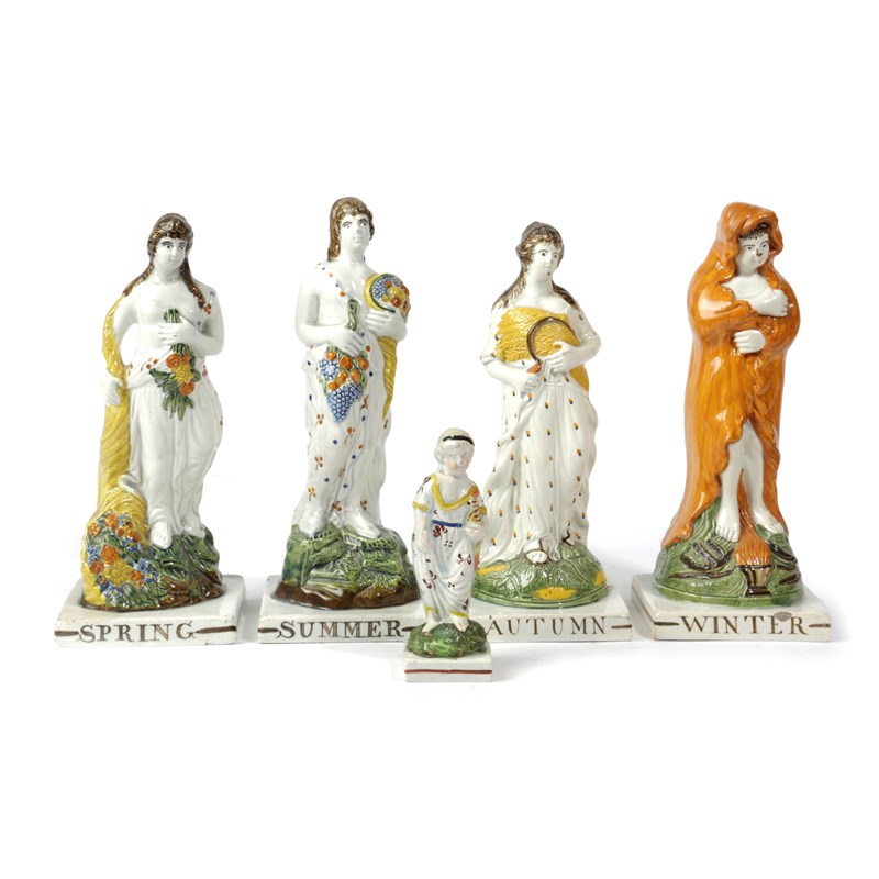 A MATCHED SET OF FOUR PEARLWARE FIGURES EMBLEMATIC OF THE SEASONS