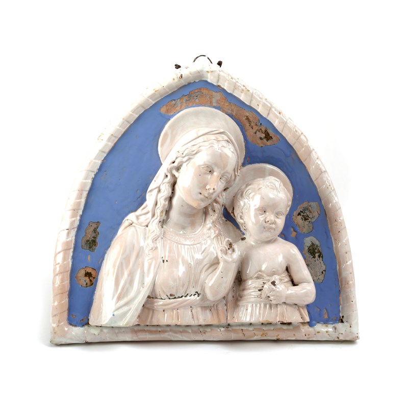 AN ITALIAN MAIOLICA VIRGIN AND CHILD PLAQUE