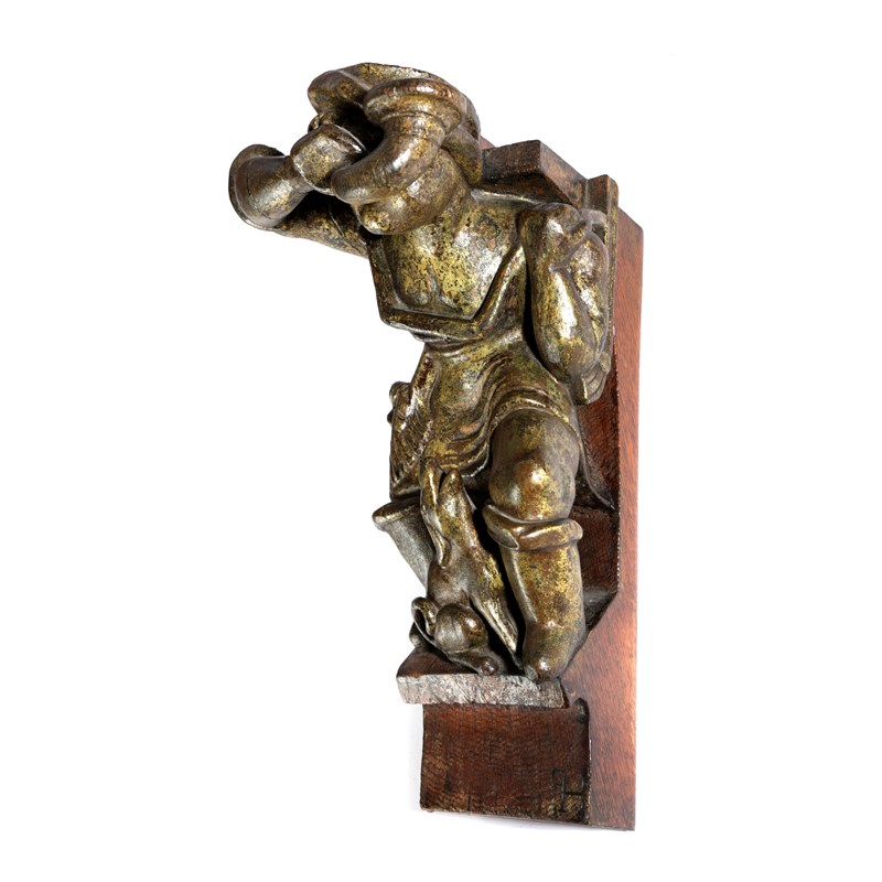A FLEMISH OAK AND PARCEL GILT CORBEL