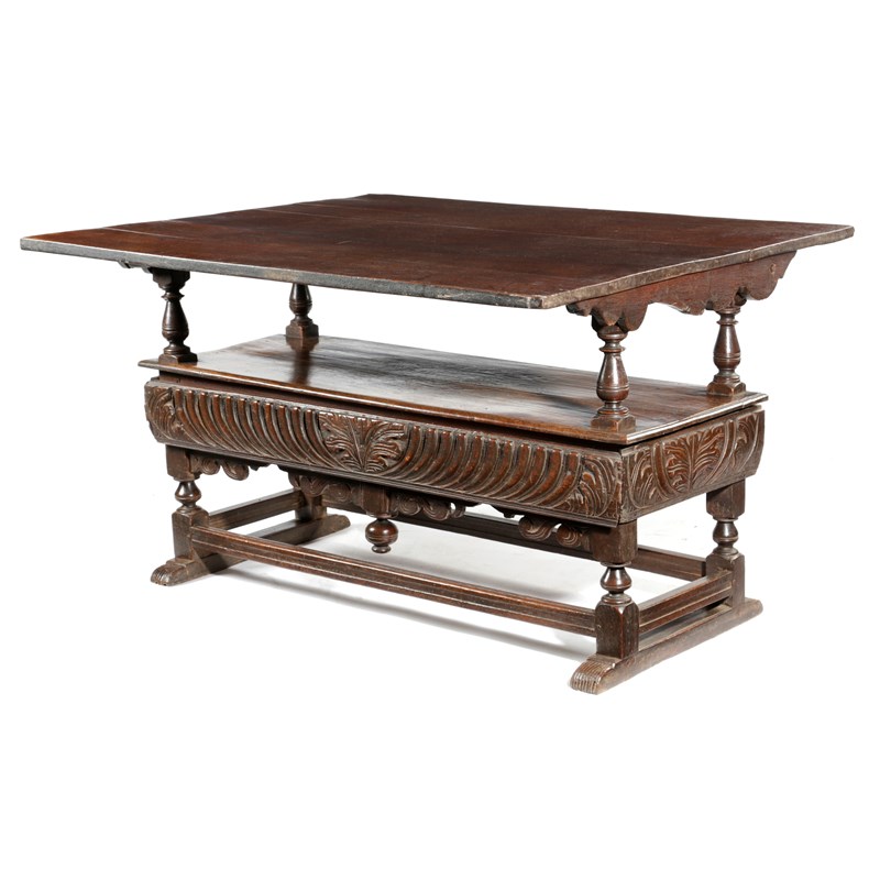 AN EXCEPTIONALLY RARE CHARLES II OAK SETTLE TABLE