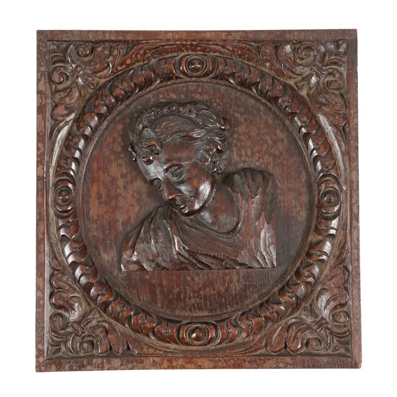A CARVED OAK PANEL