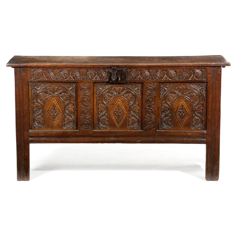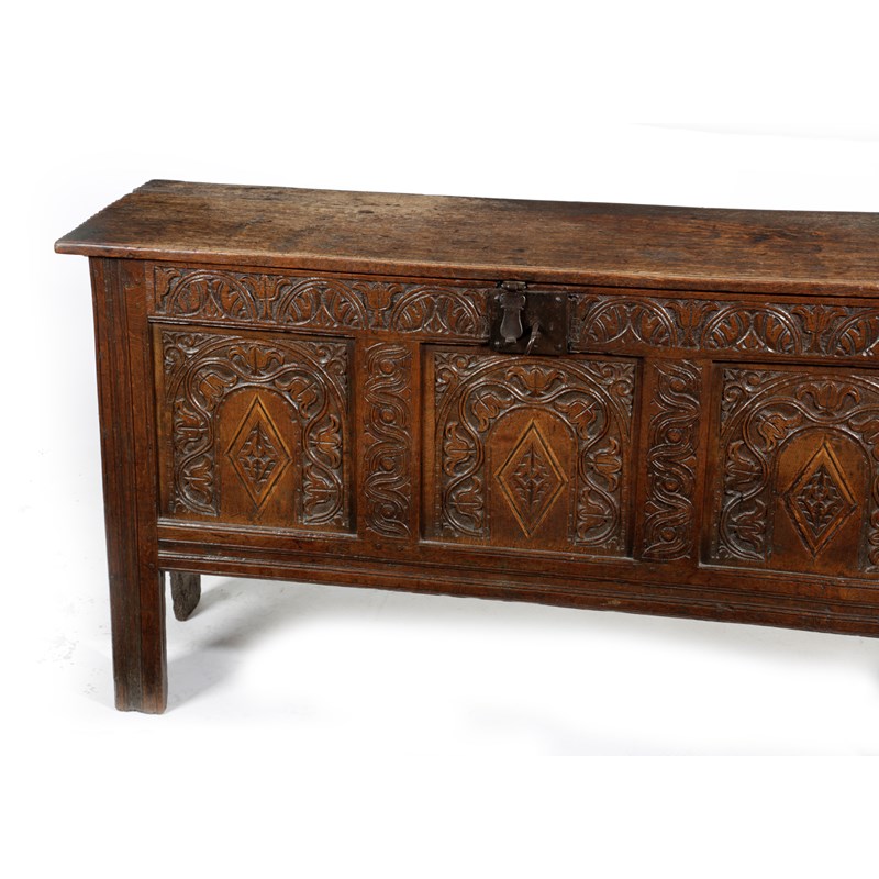 A CHARLES II OAK COFFER