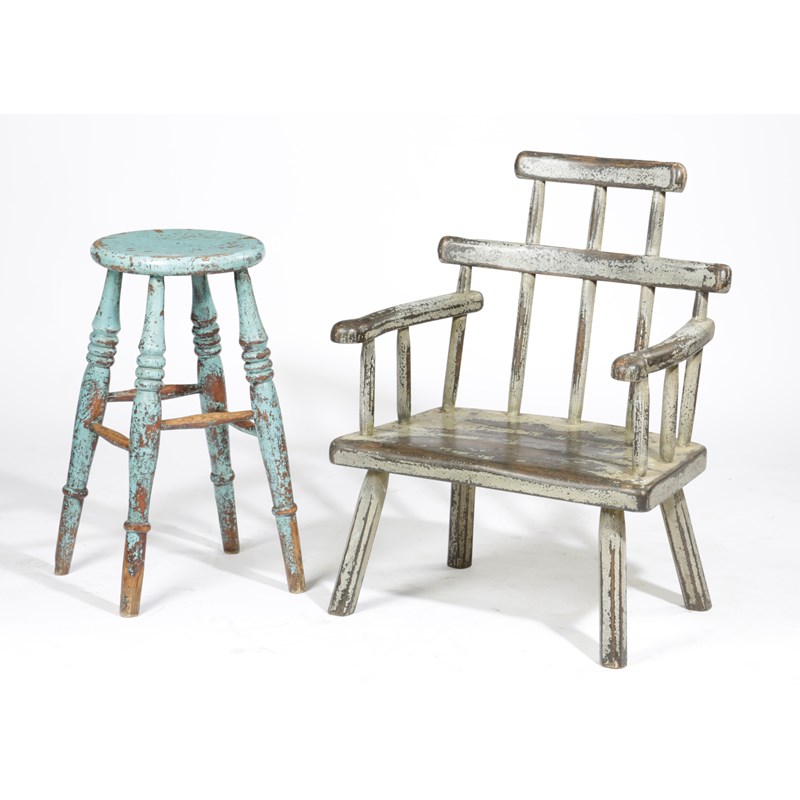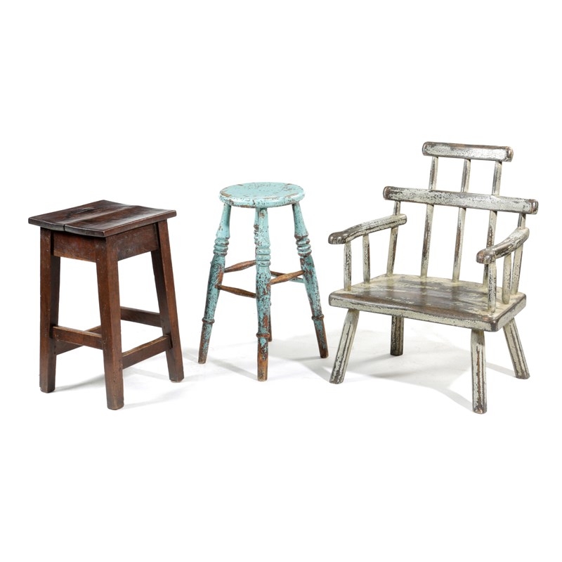 together with a painted elm stool and an oak example (3)