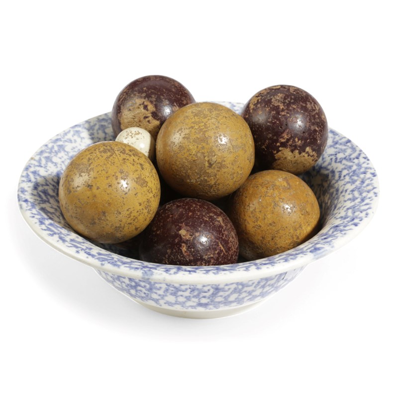 A SET OF EIGHT WOODEN CARPET BOWLS