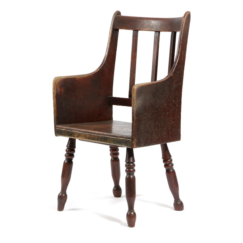 A PRIMITIVE FOLK ART PAINTED PINE ARMCHAIR