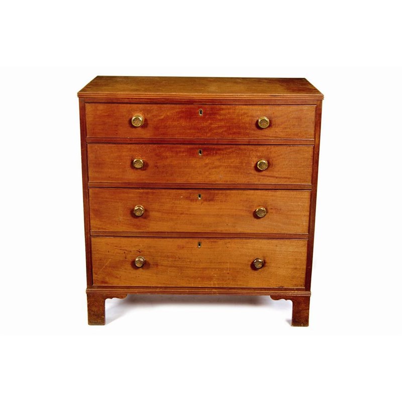 An early 19th century mahogany chest, the reeded edge top above four graduated drawers, on bracket feet, with pine sides, 38.5in (97.8cm) h, 36.5in (92.8cm) w, 19.75in (50.1cm) d.