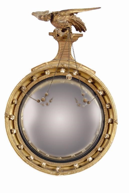 A 19th century giltwood and gesso convex mirror, with an eagle surmount, 24.5 x 17.25in (62 x 44cm). Damages.