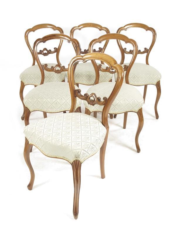 A set of six Victorian mahogany balloon back dining chairs, (6).