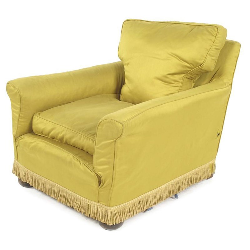 An easy armchair, on turned mahogany flattened bun feet.
