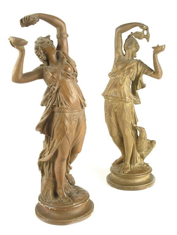 After Clodion. A pair of painted plaster figures, of classical maidens, 20.5in (52cm) h. (2)