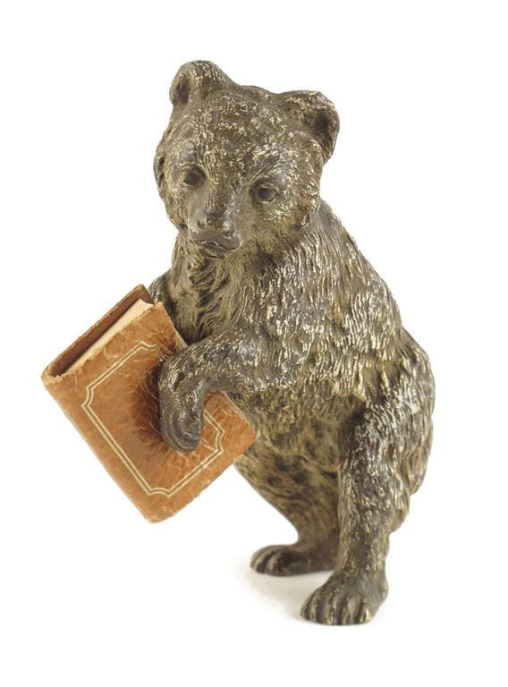 An Austrian cold painted standing bear cub, stamped '1229', holding a miniature book, 3.5in (9cm) h.