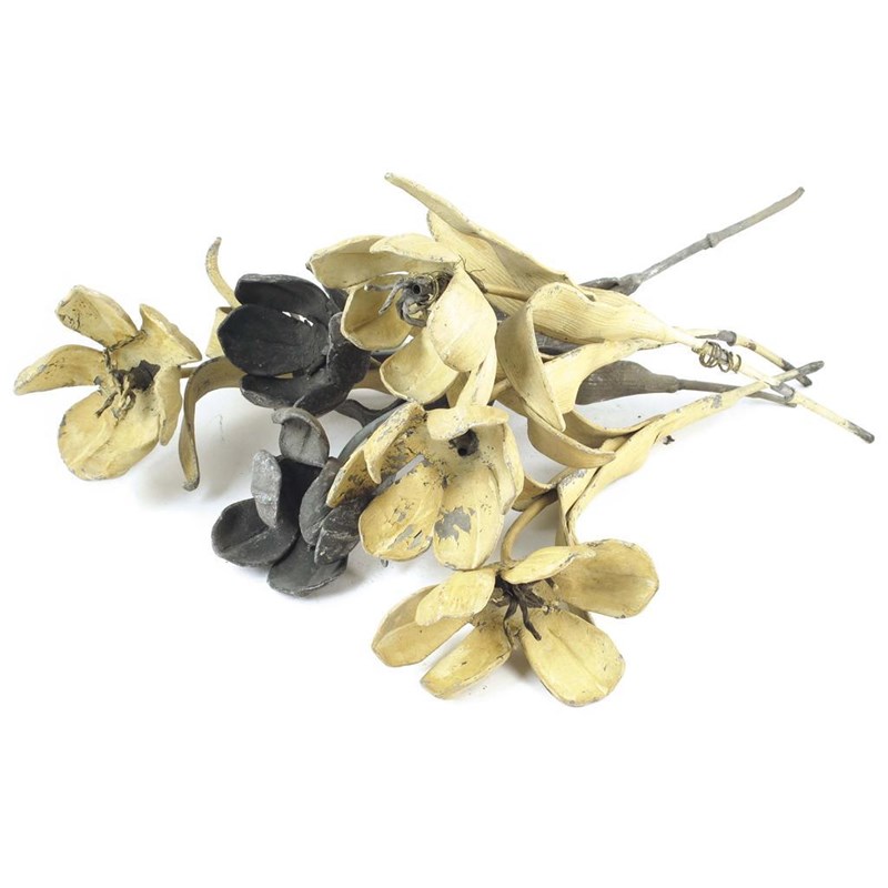 Eleven lead flower stems, six painted,16in (40.5cm) h. (11) Damages.