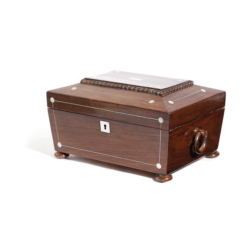 λ AN EARLY VICTORIAN ROSEWOOD SEWING BOX
