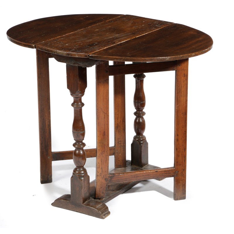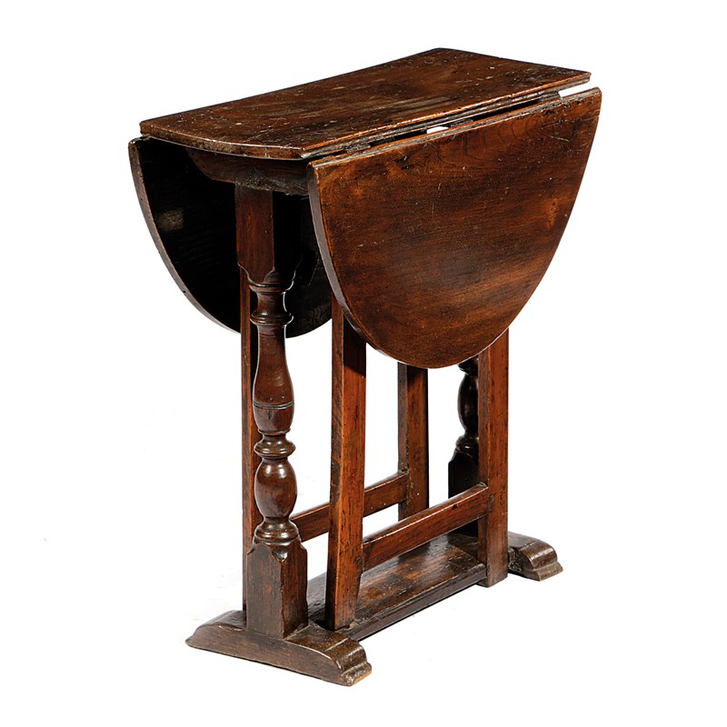 A SMALL CHARLES II ELM DROP-LEAF TABLE