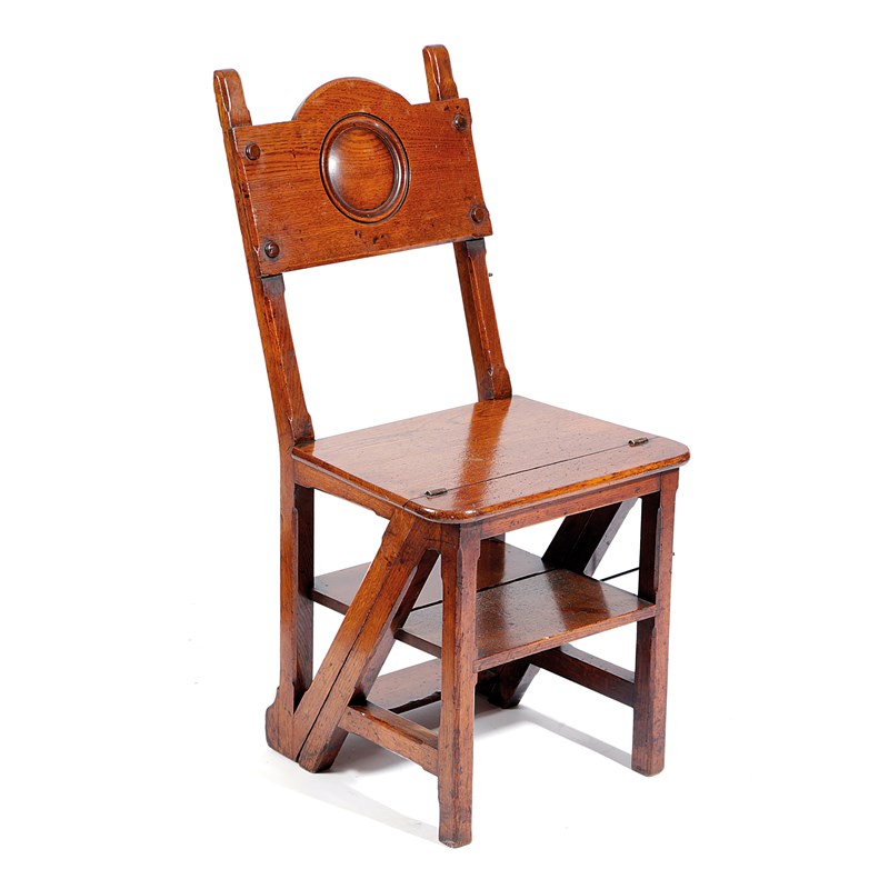 A VICTORIAN OAK GOTHIC REVIVAL METAMORPHIC LIBRARY CHAIR