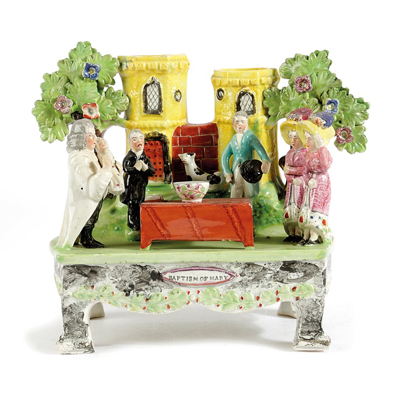 A STAFFORDSHIRE PEARLWARE POTTERY 'BAPTISM OF MARY' GROUP