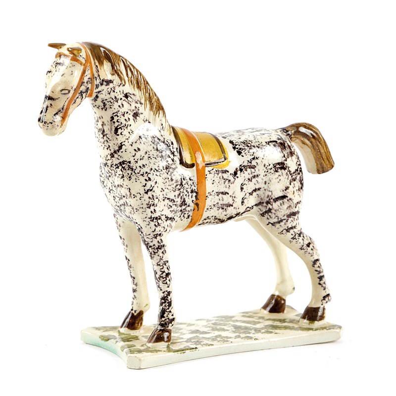 A PRATT WARE TYPE POTTERY MODEL OF A HORSE