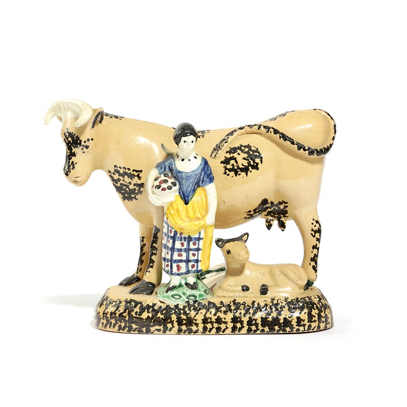 A YORKSHIRE PRATT TYPE POTTERY COW GROUP