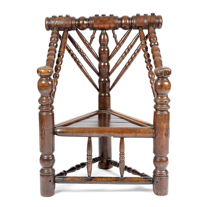 with a later triangular seat and two turned spindles to the front stretcher