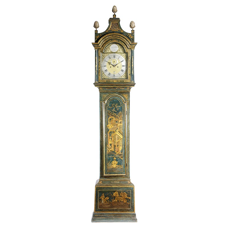 A GEORGE II BLUE JAPANNED LONGCASE CLOCK
