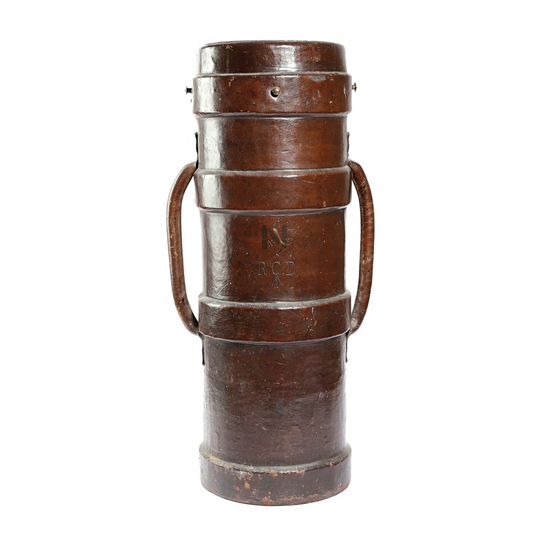 A LEATHER ARTILLERY SHELL STICKSTAND