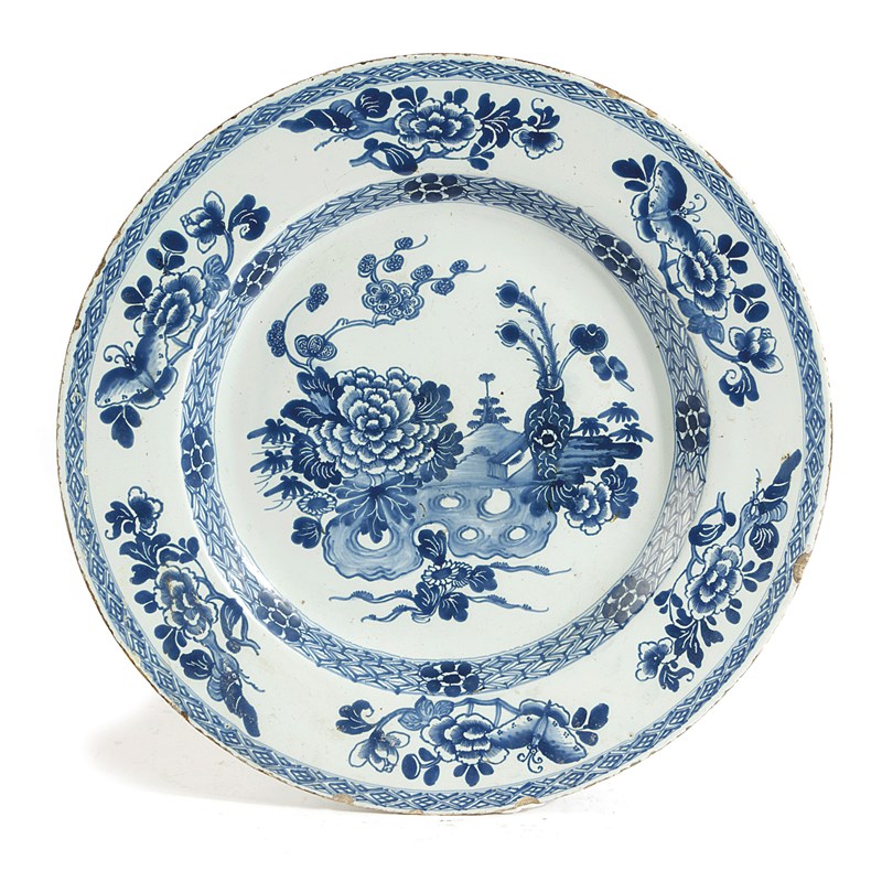 A DELFTWARE POTTERY BLUE AND WHITE CHARGER